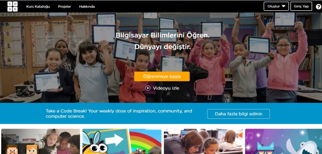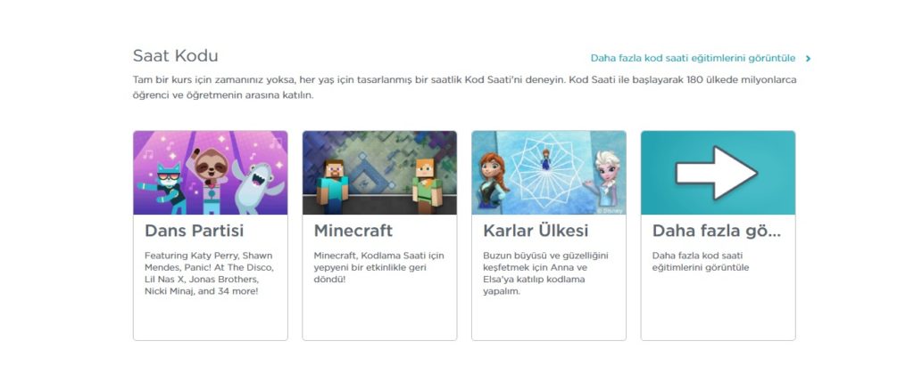 Bu kategorilerden saat kodu adı altında çocuklar için basitleştirilmiş kurslar ve sevdiği oyunlarla (Angrybirds , minecraft vb.) oluşturulmuş kodlama dersleri mevcut.